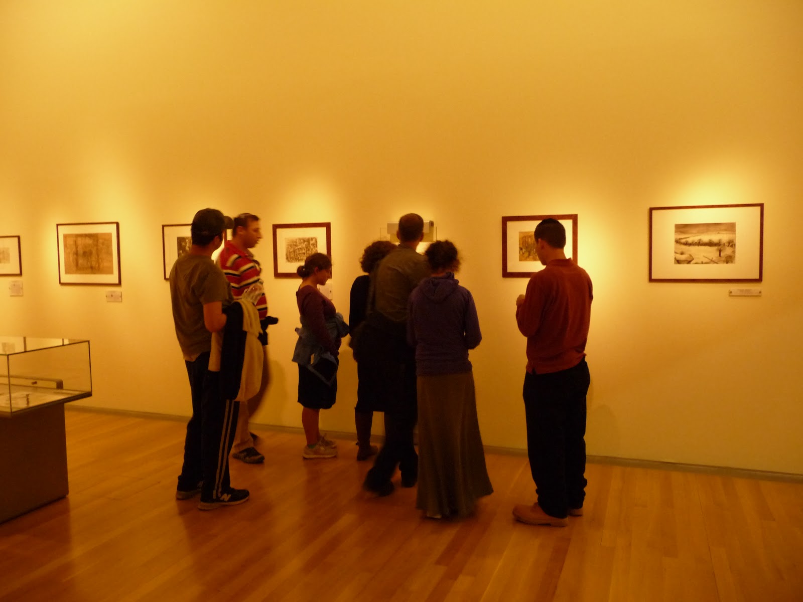 Kenny explaining a particular work of art to the group inside Yad Vashem's Holocaust art gallery |